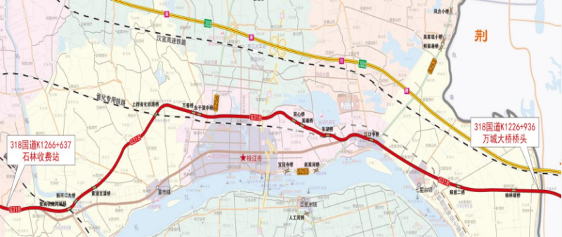 G318枝江境万城大桥桥至石林收费站施工线路示意图