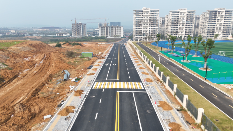 据了解,该项目北起于忠义大道,南止于职教中心,全长1700多米,项目分两期推进建设。一期工程于去年5月正式开工,二期工程接续于今年9月启动。为确保道路质量,施工过程中严格开展弯沉值检测、压实度检测等多项质量监测,筑牢工程质量防线。