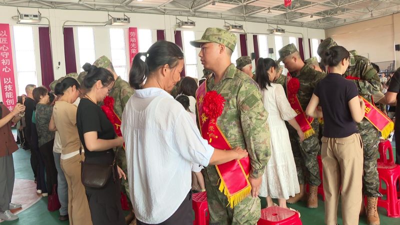 活动现场,家属们围在新兵身旁,给他们佩戴象征荣誉的红花、披上“光荣入伍”的绶带,还不时为新兵整理衣角,用无声的行动传递牵挂与支持。