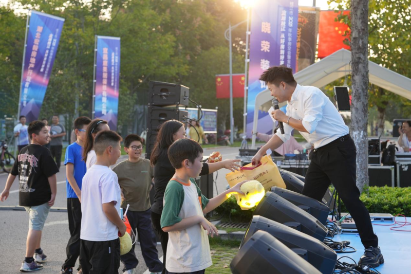 16时30分,悠扬的歌声在秋日晴空下准时唱响,《爱我中华》《明天,你好》等二十余首经典曲目轮番上演,营造出轻松愉悦的艺术氛围。演出间隙穿插的“安居知识小问答”环节,巧妙将购房补贴、楼盘信息等专业内容转化为趣味互动,观众在抢答赢奖的过程中,加深了对政策的理解。