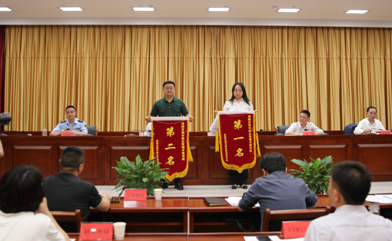 会上,葛洲坝街办、区城运中心、窑湾街办就城市综合管理作了交流发言和表态发言,区住建局、区城管局围绕小区物业管理全覆盖、工地扬尘及入江排污口综合整治、噪音扬尘油烟综合执法作了交流发言;并为2月份全区城市综合管理考核排名前两名、后两名分别发放了“红旗”和“黄旗”,