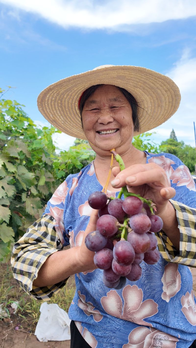 这片葡萄园的负责人李勇介绍,园里的葡萄是俗称“乒乓葡萄”的藤稔葡萄,每年3月底萌芽,7月准时迎来成熟期。“今年从7月10日就开摘了,你看这葡萄,水分足,还特别好脱皮,咬一口酸甜味儿正合适。”李勇随手摘下一颗,果皮轻轻一撕便与果肉分离,晶莹的果肉透着清爽的汁水。