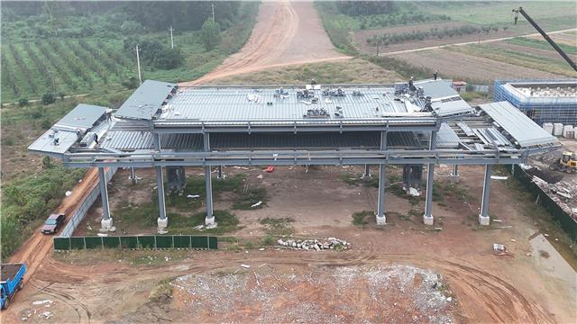 在南岸主塔不远处,高速公路入口建设同样紧张推进。据了解,目前正在进行收费站主体结构施工,未来将与大桥同步投入使用。