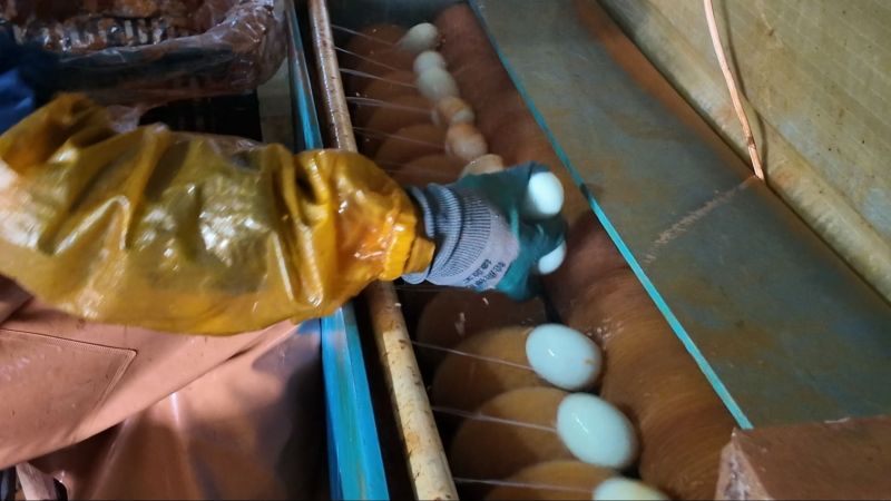 在产品加工端,合作社坚守传统工艺,更注重品质升级。鲜蛋制成的无铅松花皮蛋,需历经45天的精心腌制,蛋白晶莹剔透、蛋黄溏心绵密;咸鸭蛋则根据季节调整周期,冬季45天、夏季约30天,确保咸淡适中、油香四溢。优质的产品让合作社“不愁销路”,目前长期供应枝江小洞天、丹阳酒店等大型餐饮企业,覆盖本地各农贸市场批发渠道,还承接结婚礼盒定制订单,成为市民餐桌上的“放心味”、节庆礼单里的“特色品”。每年端午、中秋及年前的销售高峰期,订单量更是节节攀升,生态品牌的影响力逐步扩大。廖援助表示,未来将引进新的设备,进一步扩大生产。