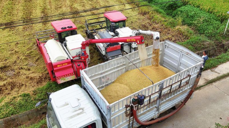 高效的收割作业同样为丰收提供了有力保障。田间,来自枝江市龚坪农机专业合作社的农机手们正驾驶着联合收割机紧张作业,伴随着阵阵轰鸣声,一排排水稻整齐倒下,串串饱满的稻谷尽收囊中。