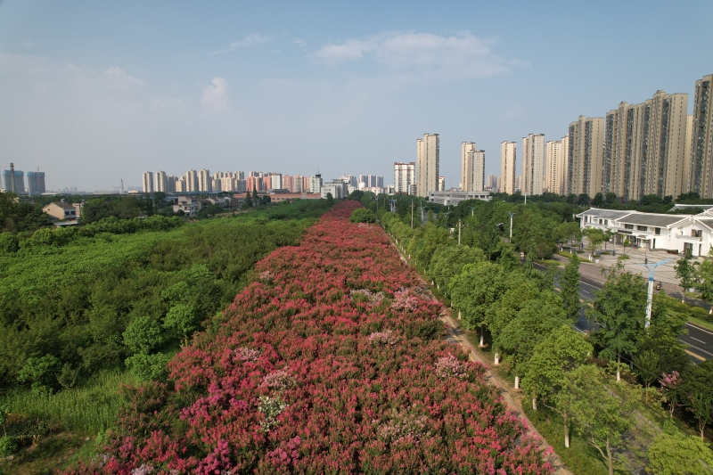 告别空调房,亲近大自然,拿出相机、手机等设备,与美丽的紫薇花合影留念。沿途赏花之余,还可以领略枝江更多秀美风光,感受生态教育、文化传承、儿童友好、经济协同发展的城市新格局。