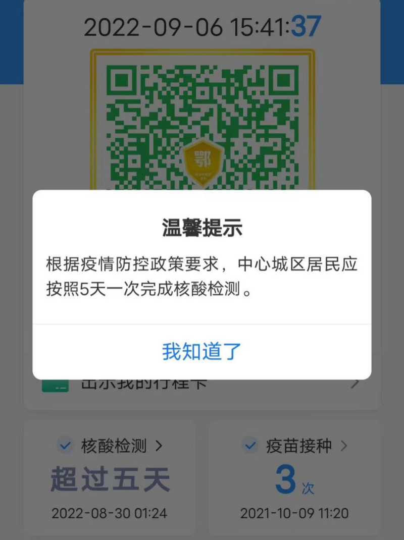 1、弹窗范围。中心城区超过5天未做核酸检测的湖北健康码用户。