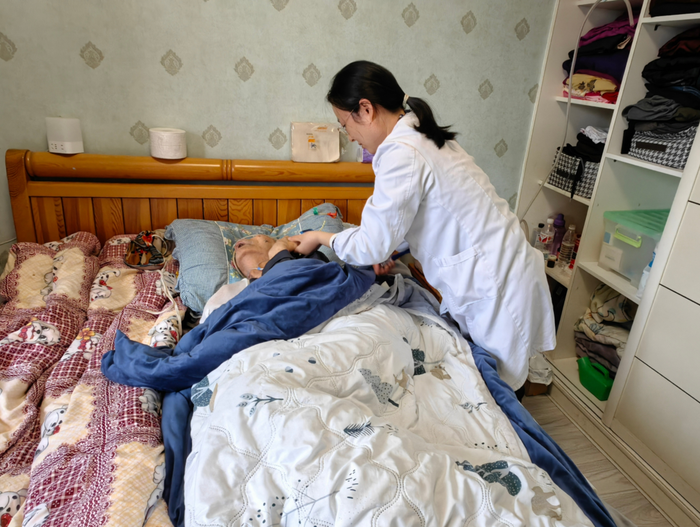 87岁的陈爷爷因长期卧床导致肺部感染及骶尾部压疮,在全科医学科治疗出院后仍需持续护理,但行动不便致使他就医困难。了解到这一情况后,医护团队立即开展了上门访视。