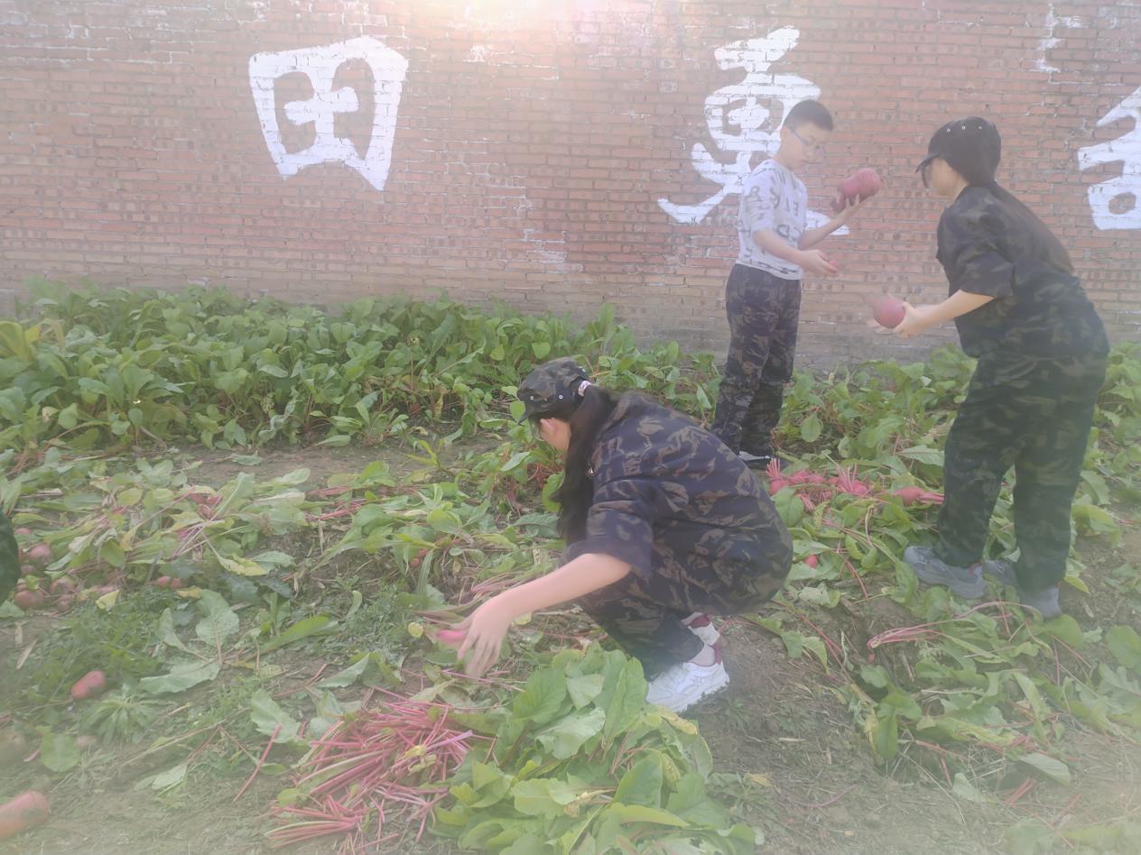 在金和村嘉馥农场的萝卜地里,学生们亲手采摘了萝卜,并将根、叶分别收集。他们惊喜地发现,萝卜叶不仅可以做馅料,还能凉拌、做汤,是不可多得的健康食材。