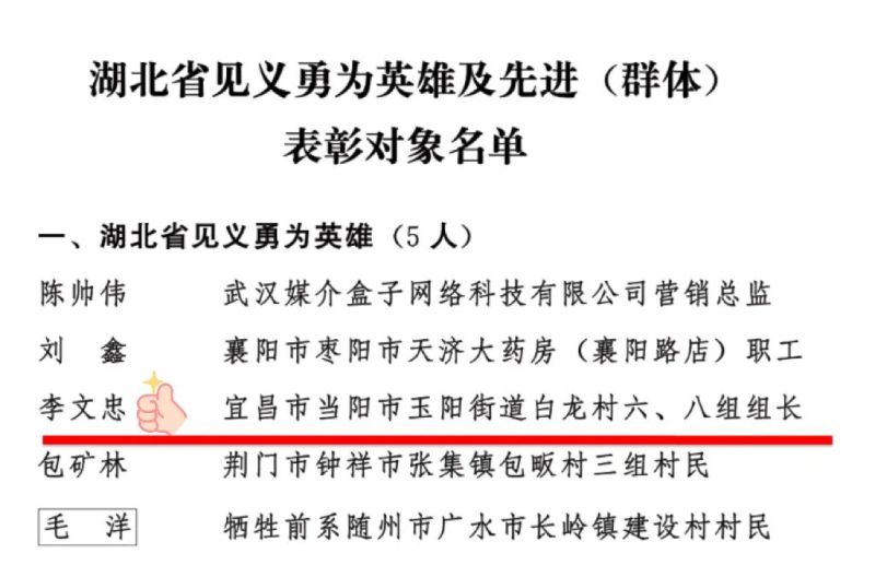 当阳市玉阳街道白龙村六、八组组长李文忠