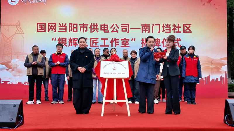 活动现场,南门垱社区与国网当阳市供电公司共同为“银辉工匠工作室”揭牌。国网当阳市供电公司的银辉工匠与青年员工代表庄严宣誓,承诺将秉持匠心精神,守护万家灯火。