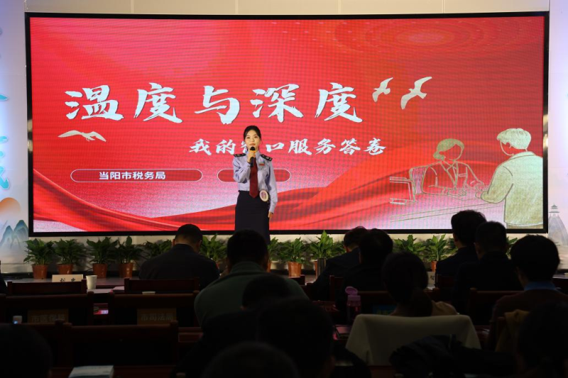 竞赛前期,当阳市以“人人参与、人人宣讲、人人练兵”为核心,开展全市宜人服务劳动竞赛,70余名窗口工作人员踊跃参与、同台竞技,在实战中锤炼业务技能、提升服务质效。最终,3名优秀选手脱颖而出,代表当阳出征市级赛场。税务窗口以真情服务为笔,书写为民办事的暖心答卷,其讲述的窗口服务故事获评“十佳‘宜人服务’故事”;不动产登记部门综合窗口以高效办件展示政务服务的速度与精度,获评“十佳‘宜人服务’网办能手”;市人社部门聚焦退休服务改革,筑牢群众养老保障防线,其创新实践获评“优秀‘宜人服务’案例”。
