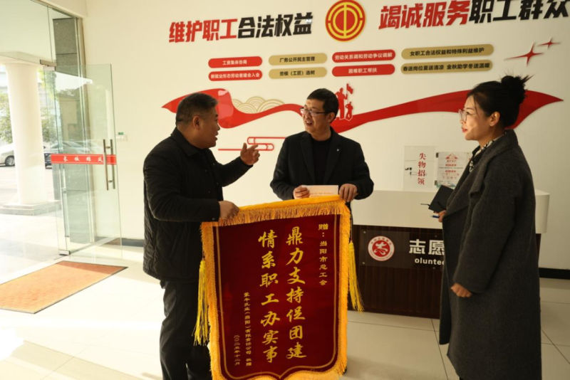 本网讯(陈贵莲、简林)“真的太感谢你们了!多亏了你们的鼎力支持,我们的劳动竞赛和红色教育活动才能如此顺利!”12月3日,蒙牛乳业(当阳)有限责任公司相关负责人来到市总工会综合服务大厅,将一面写有“鼎力支持促团建、情系职工办实事”的锦旗交到市总工会负责人手中,言语中充满感激。