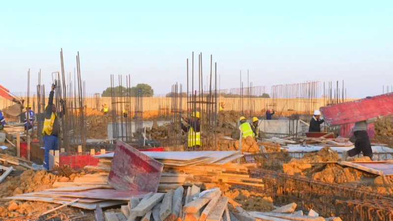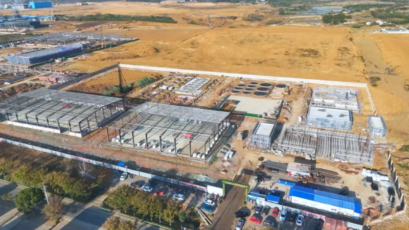 走进项目建设现场,工人们穿梭其间,生产车间、仓库等建筑的主体框架已经初见雏形,一片热火朝天的建设景象。截至目前,该项目1号生产车间已完成40%,罐区完成30%,原料仓库、成品仓库完成65%,预计今年底完成土建工程,明年三月实现投产。二期项目拟于2026年12月底开工建设。